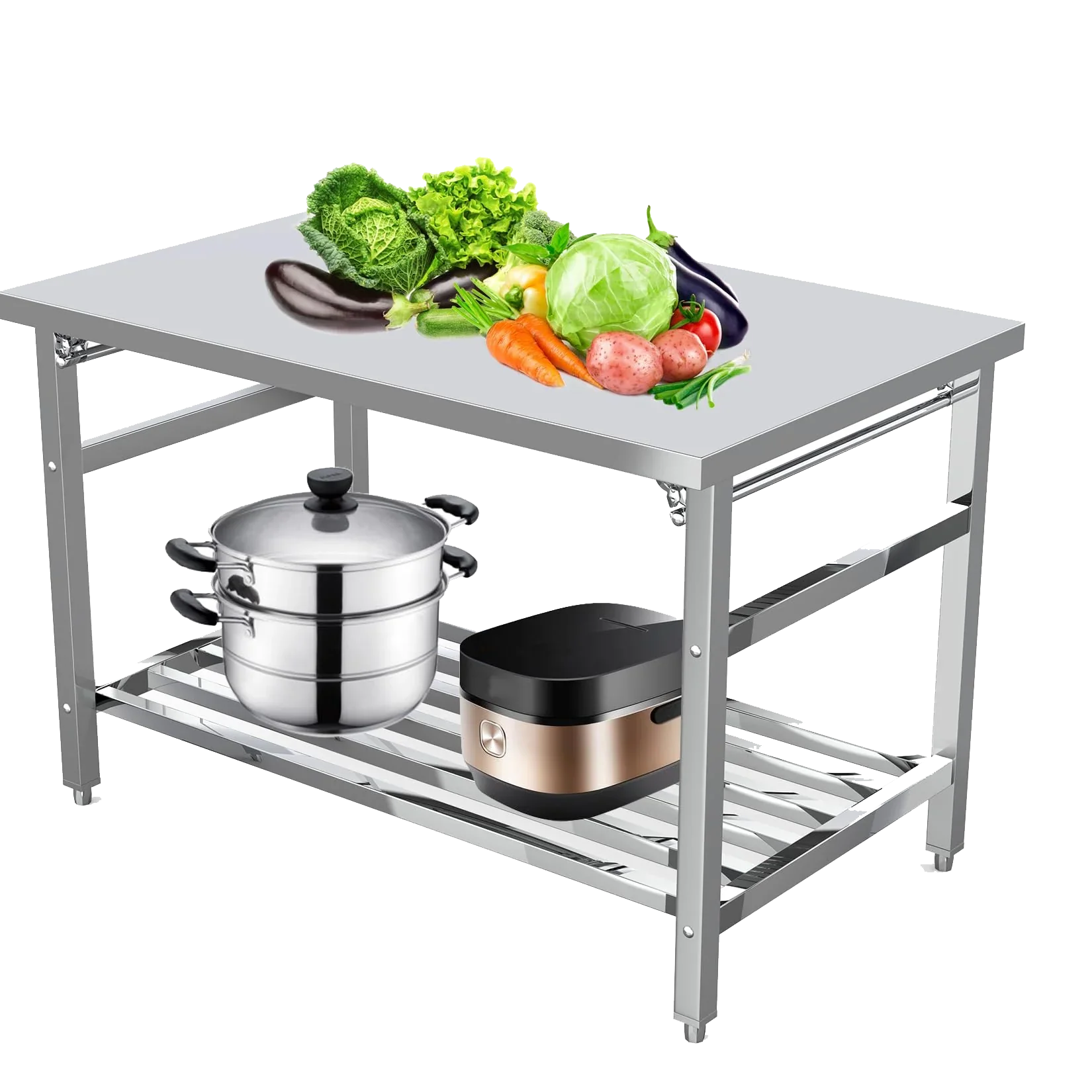 Garvee Stainless Steel Work Table 48in x 24in Commercial Prep Table with Adjustable Undershelf and Pre-installed Feet for Restaurant Kitchen Garage Outdoor, Silver