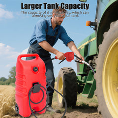 Garvee Portable Fuel Transfer Tank with Hand Pump and Hose 53L Wheeled Petrol Container for ATVs, Boats, Lawnmowers & Outdoor Equipment, Red
