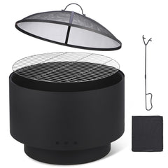Garvee 66 cm Smokeless Outdoor Fire Pit with Grill and Mesh Cover for BBQ, Camping, Bonfires and Patio Heating