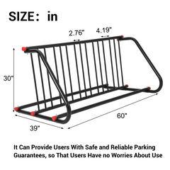 - THREE OPTIONS: 5-Bike Single-Side (L:60 in x W:28 in x H:30 in ), 10-Bike Single-Side (L:122 in x W:28 in x H:30 in ), 10-Bike Double-Sided (L:60 in x W:39 in x H:30 in ).This ground bike rack is suitable for outside and inside occasions.