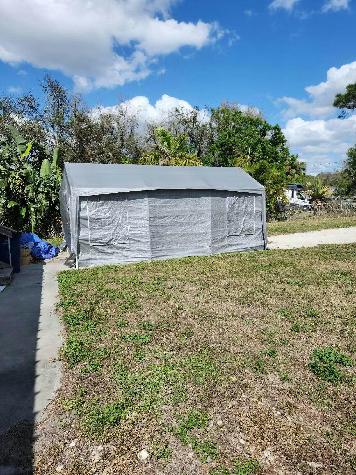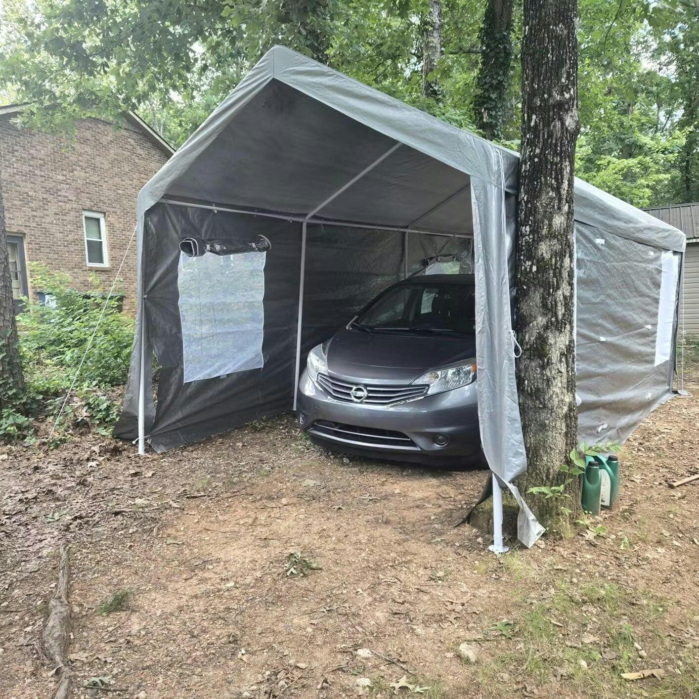 The upgraded design includes roll-up zipper doors for effortless entry and exit, plus breathable mesh windows to improve airflow and prevent heat buildup inside your shelter—ideal for storing vehicles, tools, and outdoor equipment.