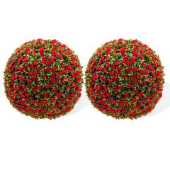 Garvee 17 in Flower Topiary Ball Decorative Balls 2PCS, Artificial Topiary Balls, Outdoor Patio Garden Indoor Wedding Decoration, Red