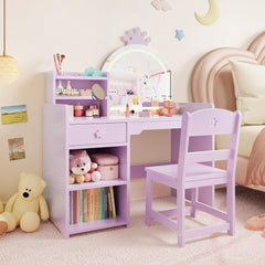 - Ample Storage for All Her Essentials: With four open shelves, a spacious tabletop, and a convenient drawer, this wooden kids makeup vanity desk keeps makeup tools, jewelry, toys, and books neatly organized and always within reach for little girls