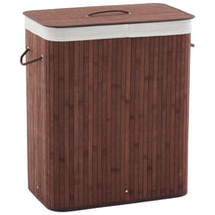 Garvee Folding Bamboo Laundry Hamper with Lid Slim 104L Clothes Basket for Small Bedrooms Laundry Storage Brown