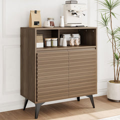 - Durable Construction with 3D Legs: Built from quality engineered wood and supported by black metal legs, this mid-century fluted cabinet is made to last. The elevated base also makes floor cleaning easy and adds a light, floating appearance.