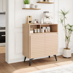 Garvee Fluted Storage Cabinet – Sideboard Buffet for Living Room, Kitchen & Entryway, Natural Wood Finish